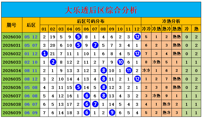 大乐透后区分析: